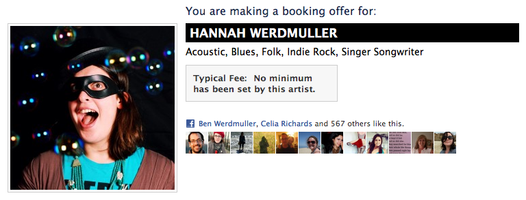 These grassroots tools are a natural fit for the web, and change the game for smaller artists like Hannah. They can use them to power their own gig-related campaigns, or they could build a fanbase that could invite them to come and play in a particular location. (I know that the Canadian startup Sceneverse intends to take this to the nth degree; they're worth watching.)