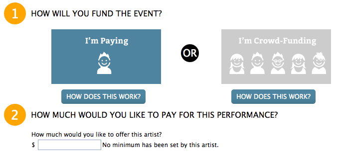 Of course, you might not have the resources to book a band to play in your living room (although I note that Hannah's decided not to list a minimum amount). No matter; you can crowdfund the gig, and build attendance in the process: